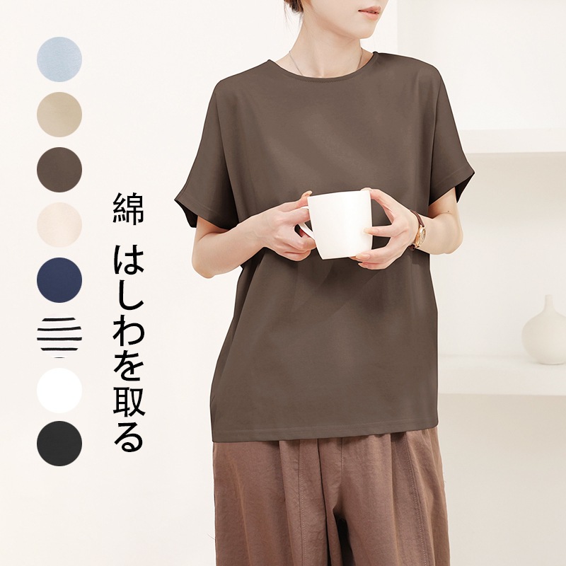 楽天の新型のコウモリの袖のtシャツの女性の夏の小さい背の丸首の純色の百合の上着の半袖