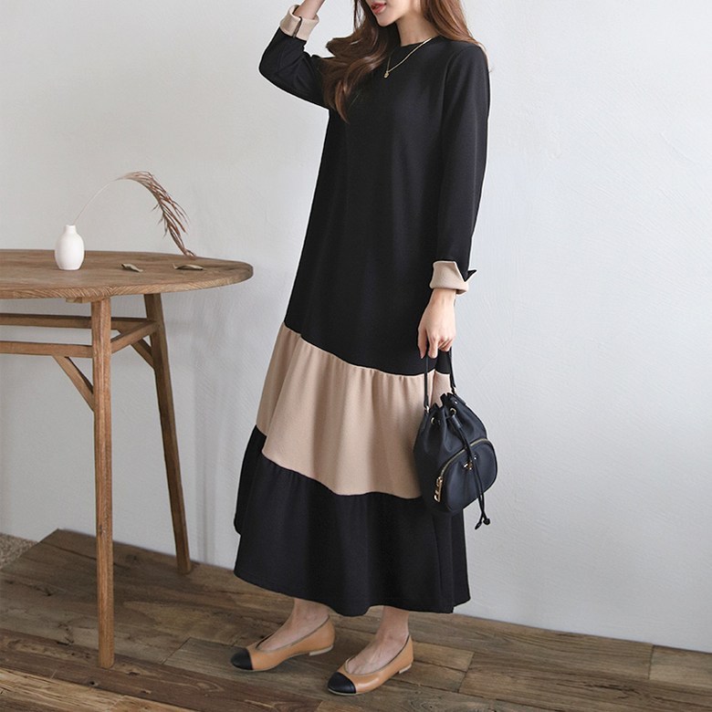 日系日本楽天韓国外単韓国版甘美ゆるいワンピースカバー春秋ロングスカート長袖スカート