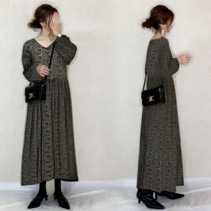 2025春秋装新型日系対外貿易フランス砕花ゆるい痩せ長袖女性vネックワンピース女性