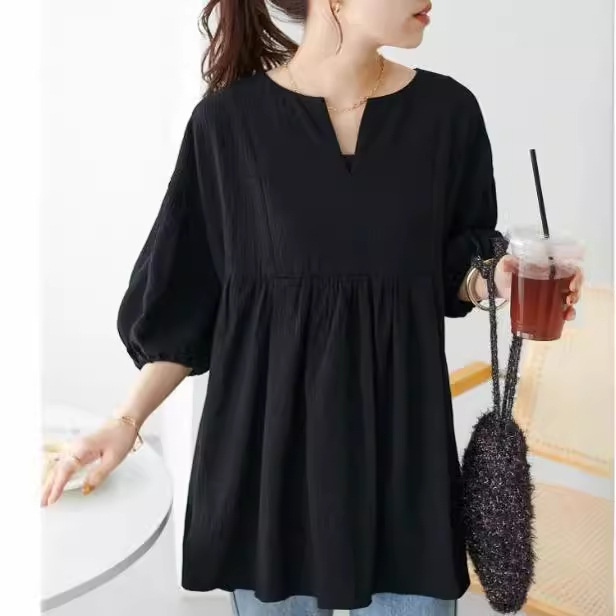 韓国外単日本楽天日系対外貿易東南アジア大サイズ上着レースシャツ底中袖tゆったり型