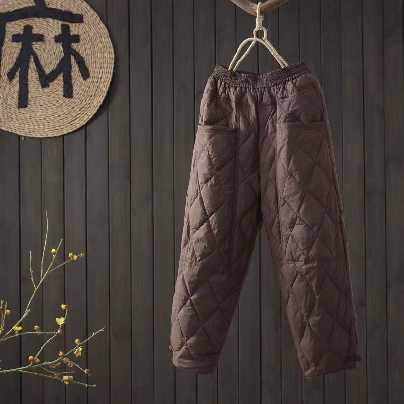 2024年の新型純色菱格圧線女性はファッションを着て保温カジュアルパンツを厚くした