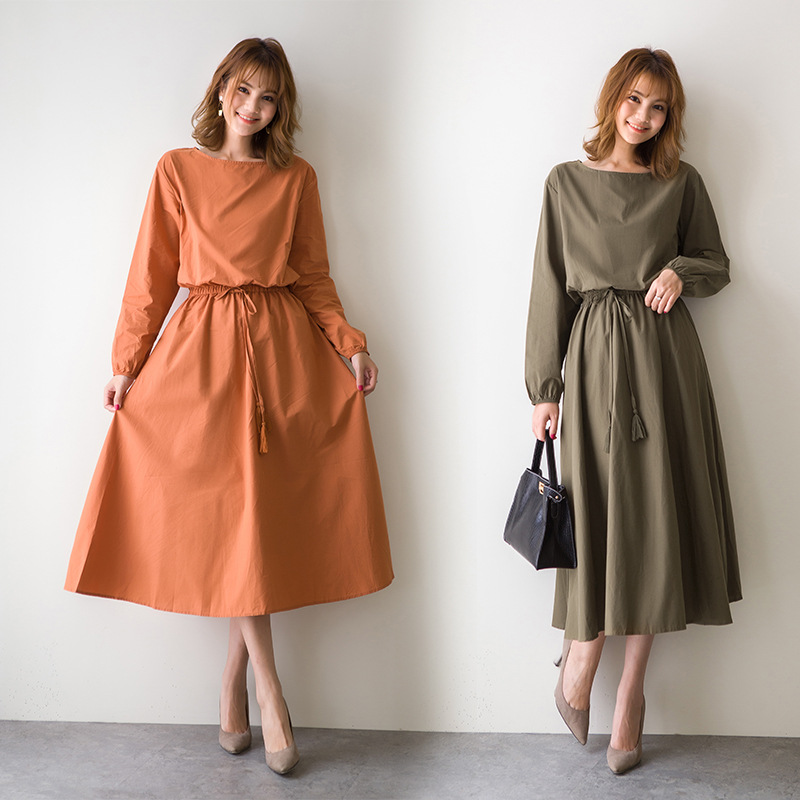 5色の実写日本楽天春夏新作シフォン長袖のワンピース
