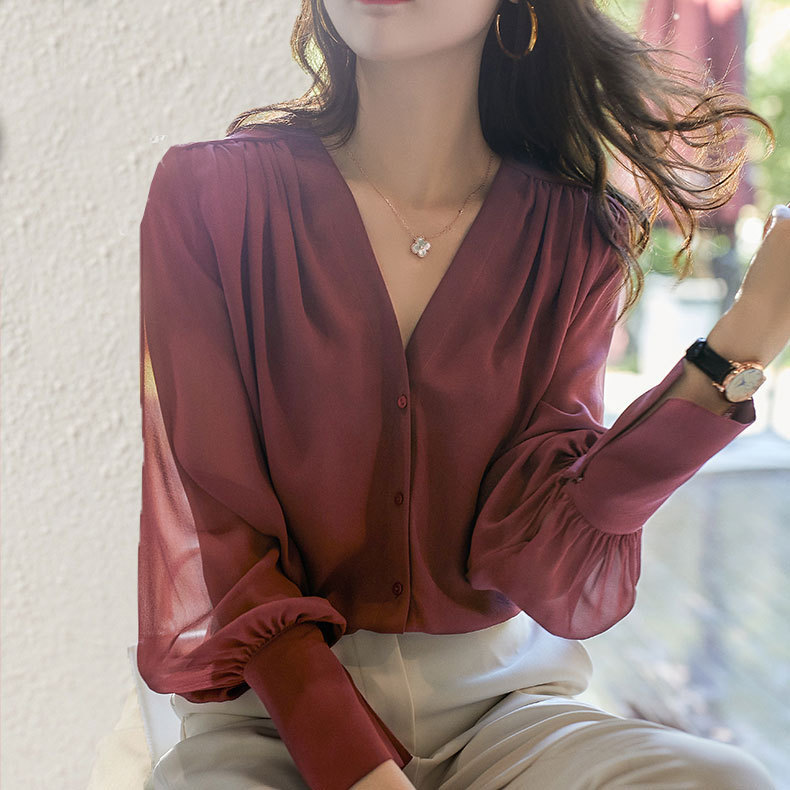 日本のフランスの気質春 2025 新しいエレガントな二重層ルーズシャツ桑シルク女性