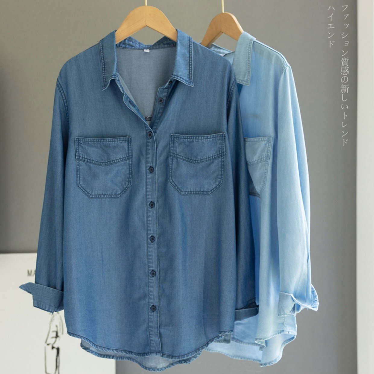 対外貿易輸出のハイエンドの水洗いデニムのシャツの女性のデザイン感が小さいです。