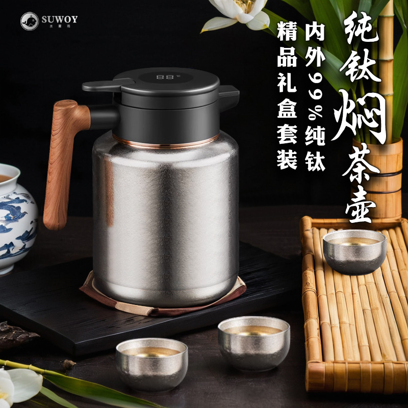 高級感のある大容量純チタン製茶釜、厚みのある保温茶水分離ケトル、お土産に最適、一釜三杯