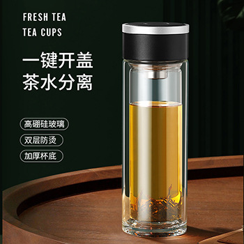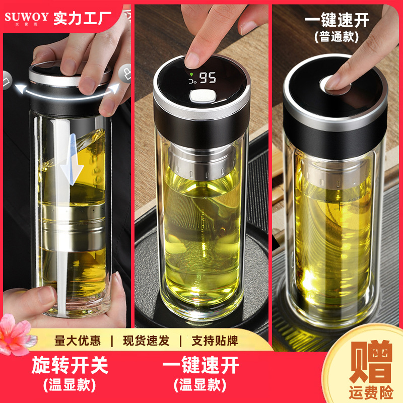 速開二重グラス速弾高ホウ素シリコン断熱カップ車載茶水分離高級カップワンキー泡カップ