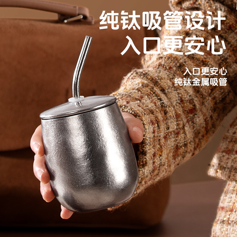 屋外用純チタン二重構造ウォーターカップ、氷花模様の卵殻型オフィスカップ、ビール、コーヒー、牛乳用断熱チタンカップ、中国風