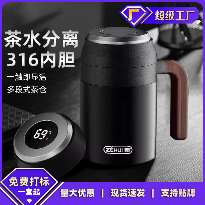 ワンキー開蓋保温カップ大容量316ステンレス茶水分離泡カップ知能温顕永康彫刻