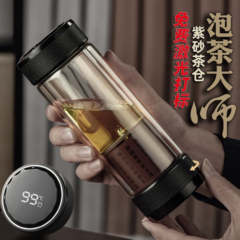 紫砂茶水分離カップ高ホウ素シリコン二層断熱耐高温ガラス高級カップ泡茶カップ卸売り