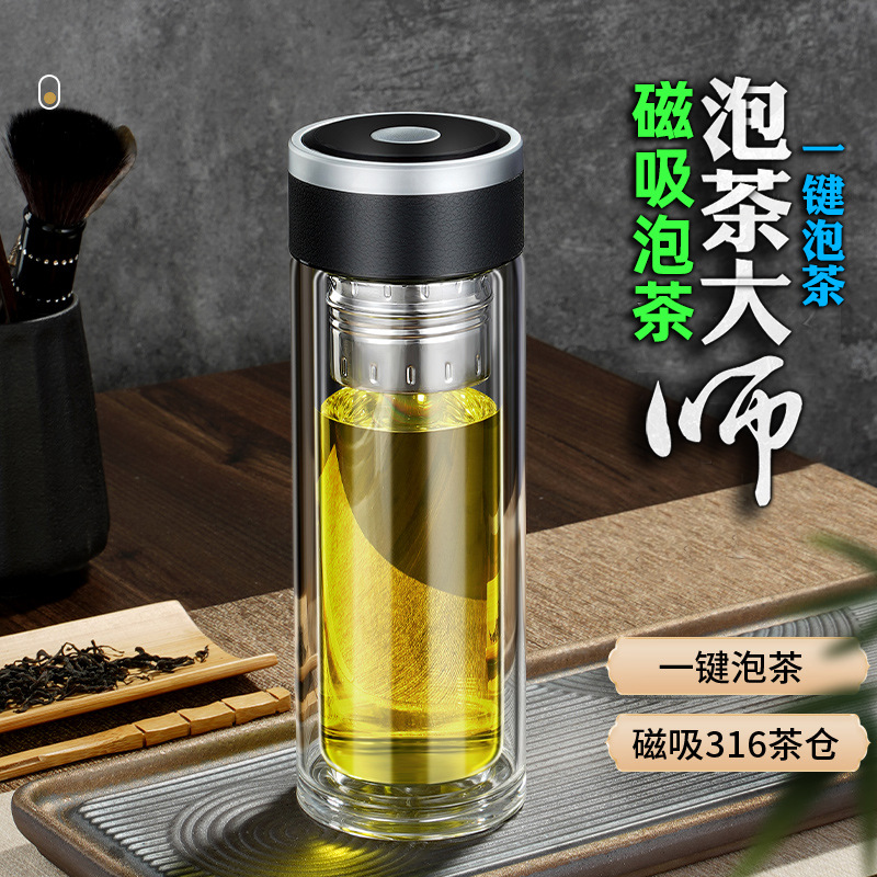 磁気弾二重ガラスカップ男性茶水分離カップカップ高級磁気茶カッププレゼントロゴ