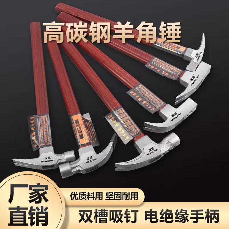 ポンロン高硬度木工羊角ハンマー絶縁柄ハンマー磁気テンプレート付き工事現場ハンマー