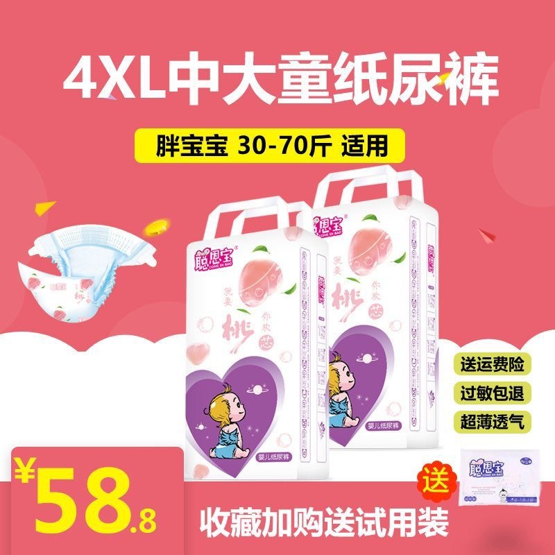 20-70斤の中の子供の太った赤ちゃんの紙おむつ4xxxx l聡恩宝超大サイズの夜のズボンの尿が濡れない3xl