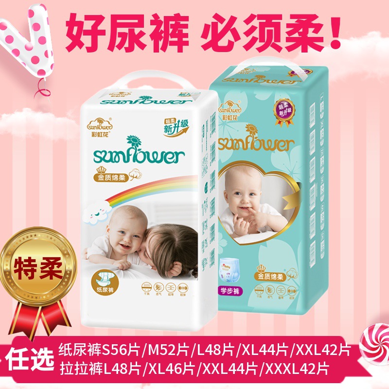 小包は卸売りの規格品の虹の花の50枚を包んで赤ちゃんの超柔らかい通気性の紙おむつを詰めてズボンを引っ張ります。