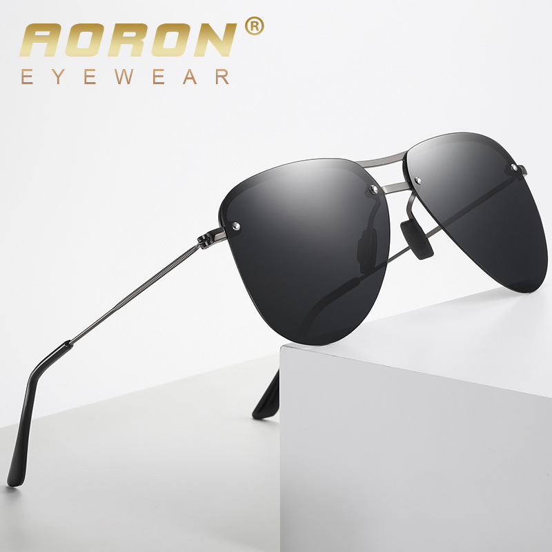 Aoron新しいファッション偏光サングラスラウンド縁なしサングラス太子ミラーtr脚622