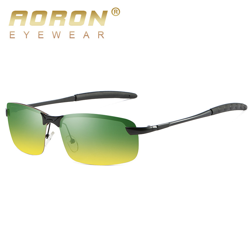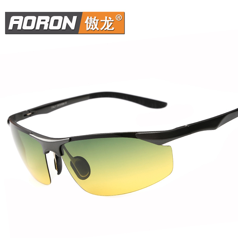 昼と夜の両方偏光ナイトビジョンアルミマグネシウムハーフフレームファッションサングラス男性运転メガネ8179