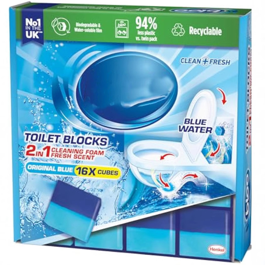 トイレブロック オリジナルブルー、タンクブロックに着色された水