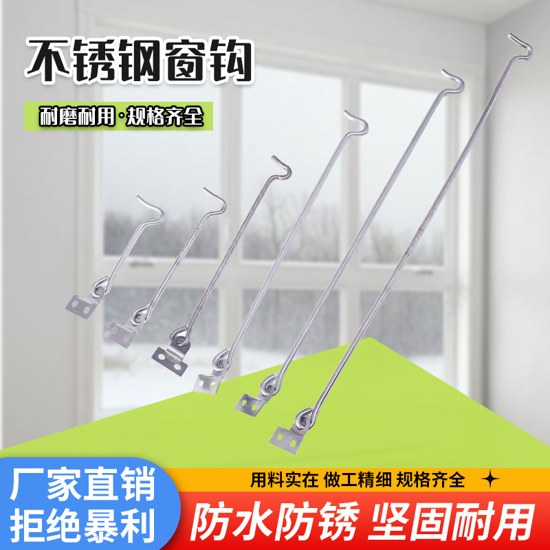 厚いステンレスの窓のフックにフックをかけてフックをかけます。
