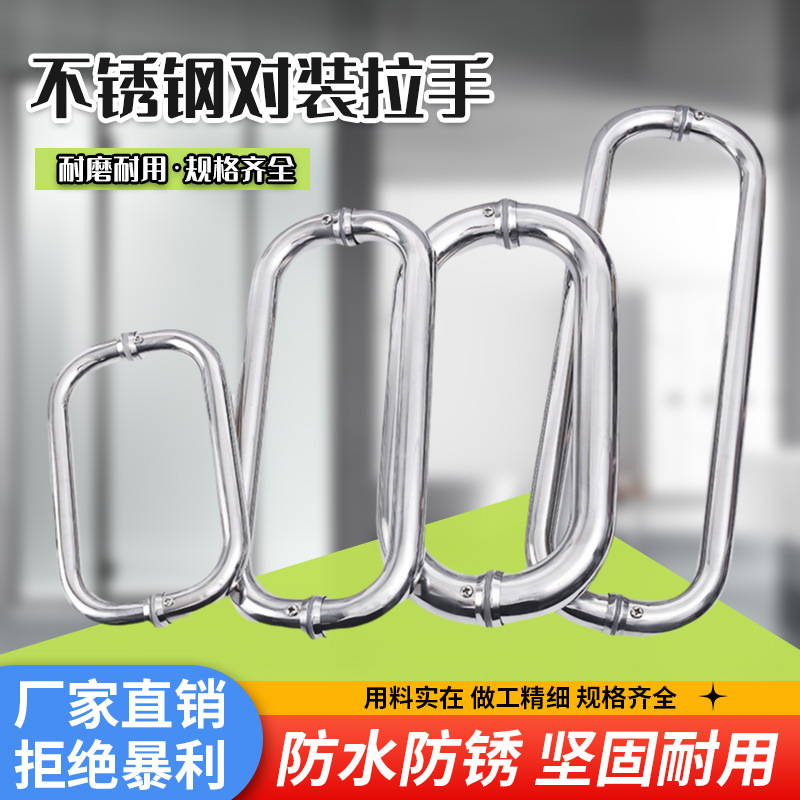シンプルなステンレス鋼 O 字型ペアハンドルトイレバスルームスライドガラスドアエルボ肥厚アームレスト工場直販