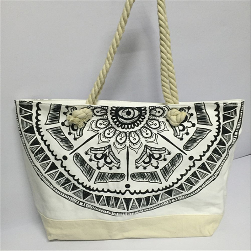 工場卸売 2022 新しいプリントキャンバスバッグ女性のプリントショルダーバッグエスニックスタイルキャンバスビーチバッグ