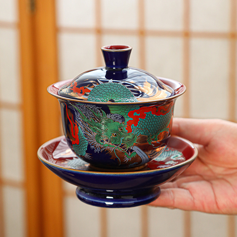 エナメルセラミック三才蓋碗茶杯単一の茶杯敬茶碗家庭用中国式泡茶工夫茶具セット