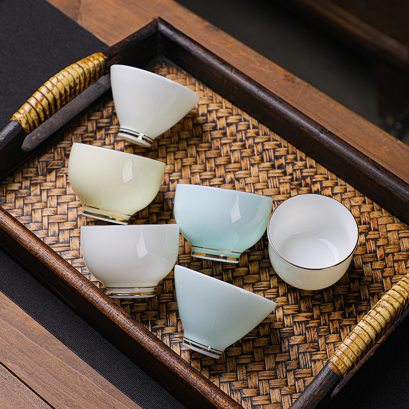陶磁器茶杯、羊脂玉小茶杯、ギフト、金彩縁、個人用功夫茶杯、家庭用茶器