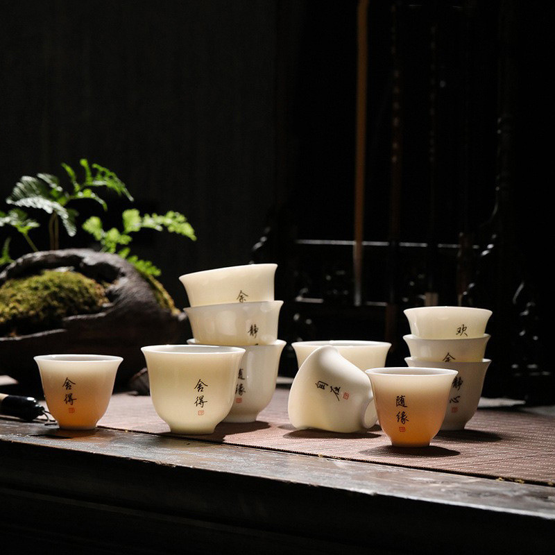陶磁器品茗杯羊脂玉茶杯工夫茶器セット陶磁器単杯主人杯個人杯加印ロゴ