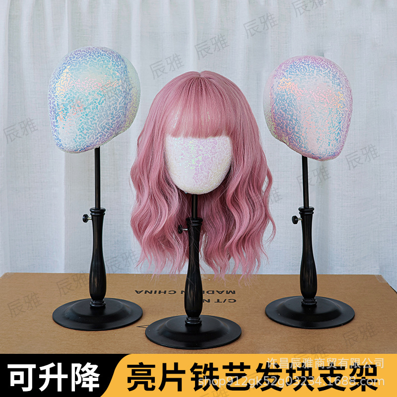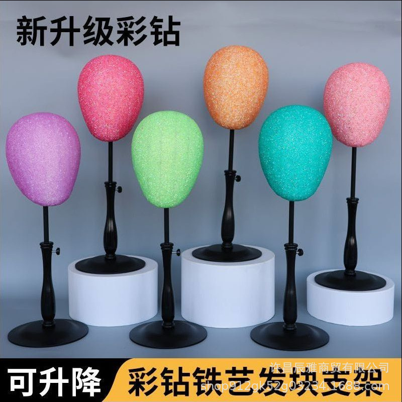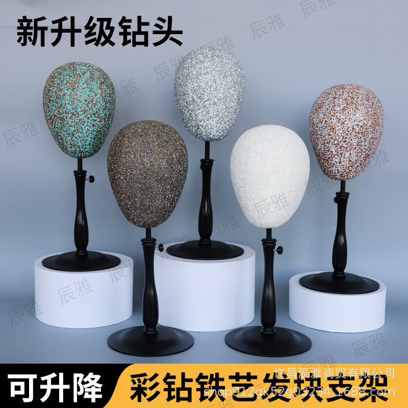 新しいハイエンドの輝くダイヤモンドウィッグヘアブロックホルダーは、針型をサポートし、ウィンドウディスプレイホルダーにヘッドギアを配置できます。