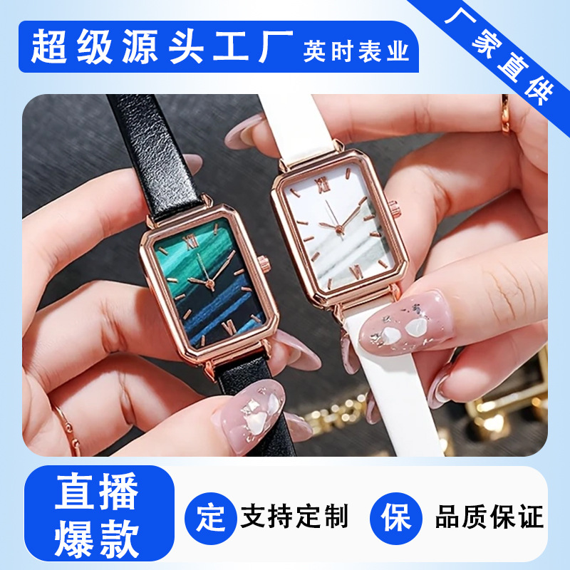 Douyin 人気のレディースウォッチ、ライトラグジュアリーニッチレトロ学生リトルグリーンウォッチ、レディースリトルシュガーキューブウォッチ、シンプルでファッショナブル