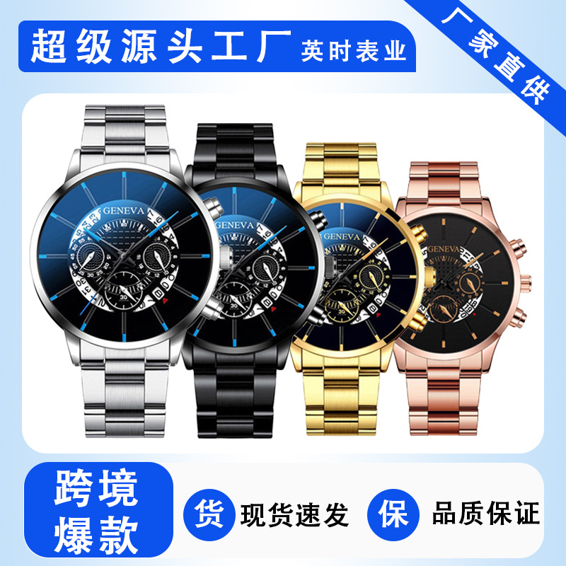 国境を越えた人気のメンズカレンダースチールバンドウォッチ、ハイエンドメンズウォッチ、夜光針、非機械式クォーツ時計