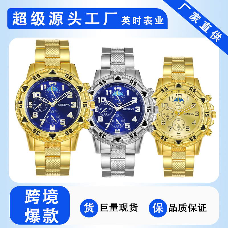 クロスボーダーホットスタイル腕時計メンズハイエンドビジネスウォッチ中東ホットセール大型ダイヤルブルーライトガラスクォーツ時計