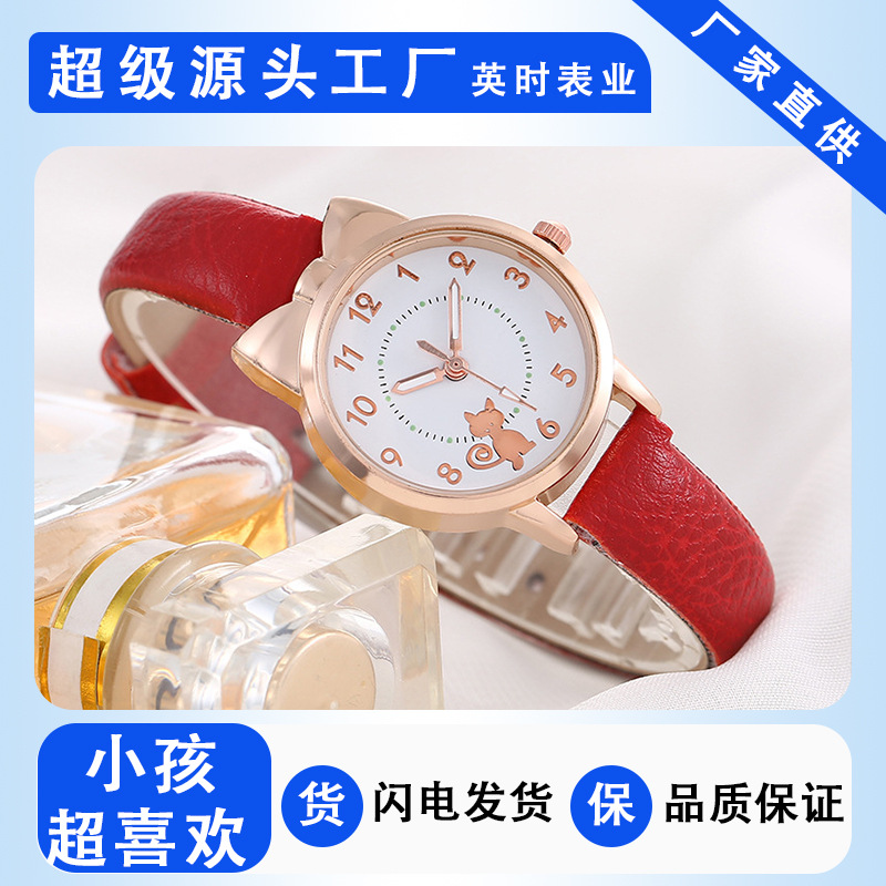 人気の子供用夜光時計女の子かわいいリボン猫パターン学生デジタルベルト時計卸売