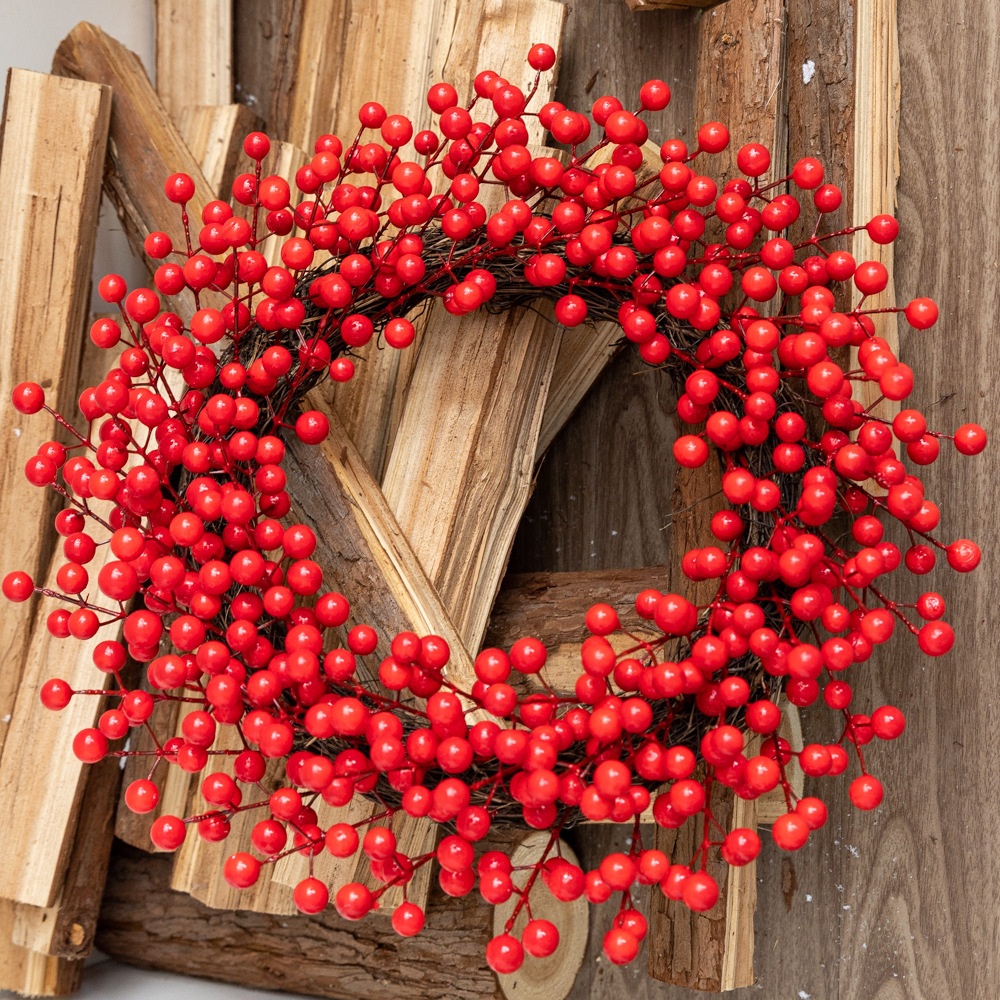 美美国境を越えたアマゾンTemuクリスマスベリー花輪アメリカの愛は赤いお祝いの前のドアたちに装飾を掛けている