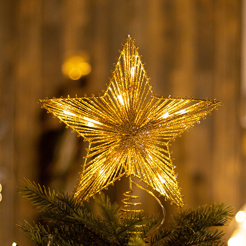 2023クロスボーダーアマゾン発光鉄製クリスマスツリートップ星五角星ツリートップ星ledライト飾り五星