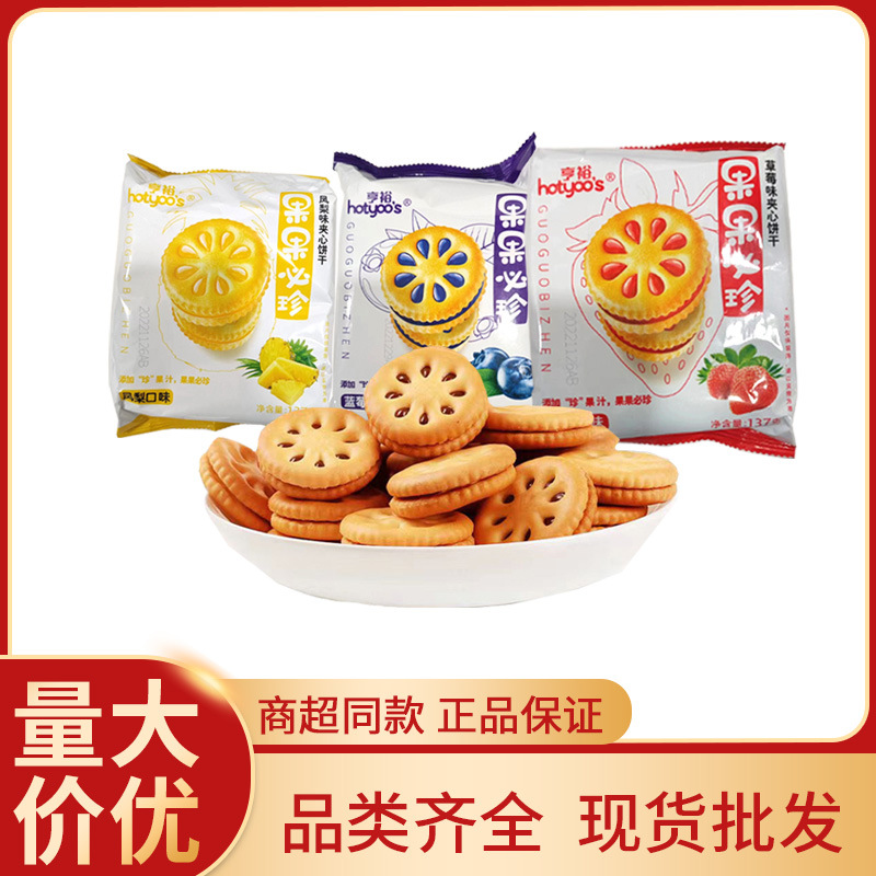 亨裕ジャム型サンドイッチビスケット137g包装いちごブルーベリーパイナップル味果果必珍レジャー間食