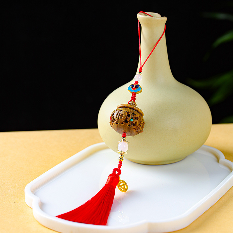 文芸創意diy万事如意香嚢緑檀レトロ彫刻花香薫拡香器車掛携帯電話カバン掛け
