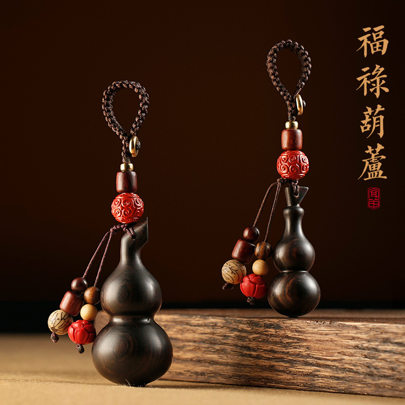 檀木の小さいヒョウタンは自動車の鍵を掛けて男女のカップルの手作業で携帯電話を編んでチェーンを掛けてペンダントを掛けます。