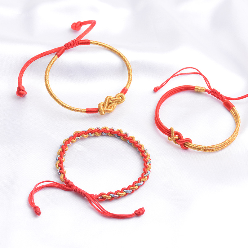 4つのお下げを編むことができます。金の線の赤い手の縄は3dの硬い金を着ることができます。