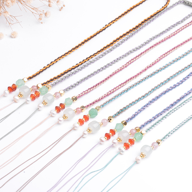手編み調節可能なネックレスロープ玉佩仏公翡翠高商品ロープ瑪瑙水晶首掛けペンダントストラップ