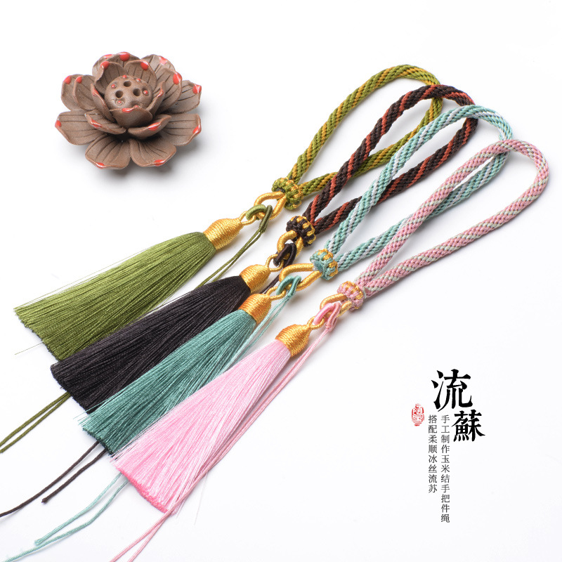 中国風タッセルペンダントカラーマッチング如意ロープスパイス手織りハンドルストラップ diy ペンダントバッグストラップ