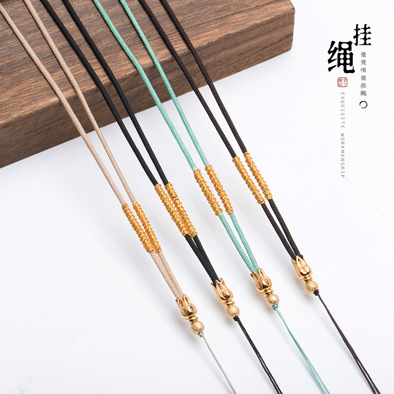 沙金六字真言編みペンダントロープ手作り黄金翡翠男女ネックレスペンダントロープ調節可能