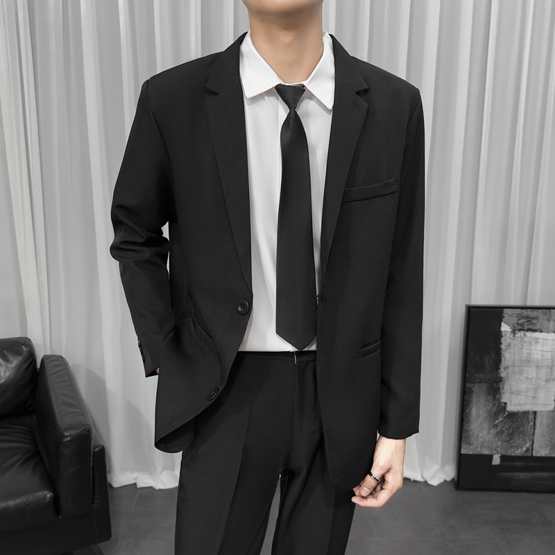 夏の垂感の黒い小さいスーツのコートの男性のビジネスの長袖のスーツの青少年の単列のボタンの潮流の単西の上着