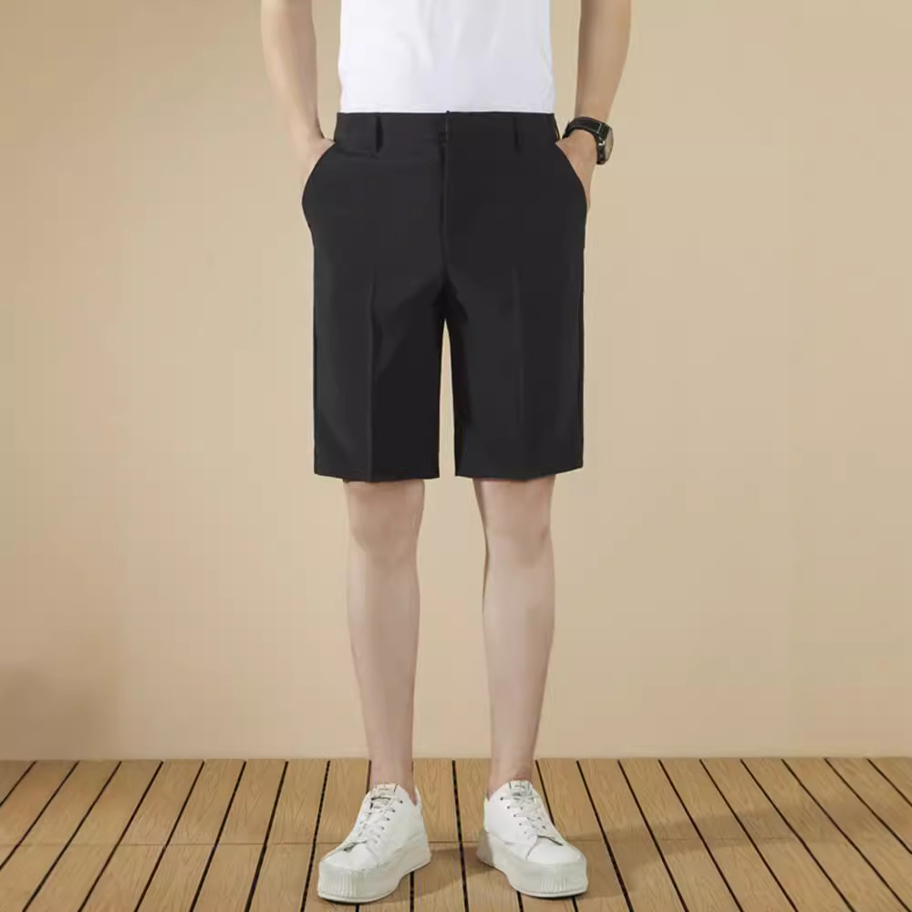 2024新型ビジネスカジュアル男子五分ズボンズボン男子夏黒氷糸男子スーツパンツ