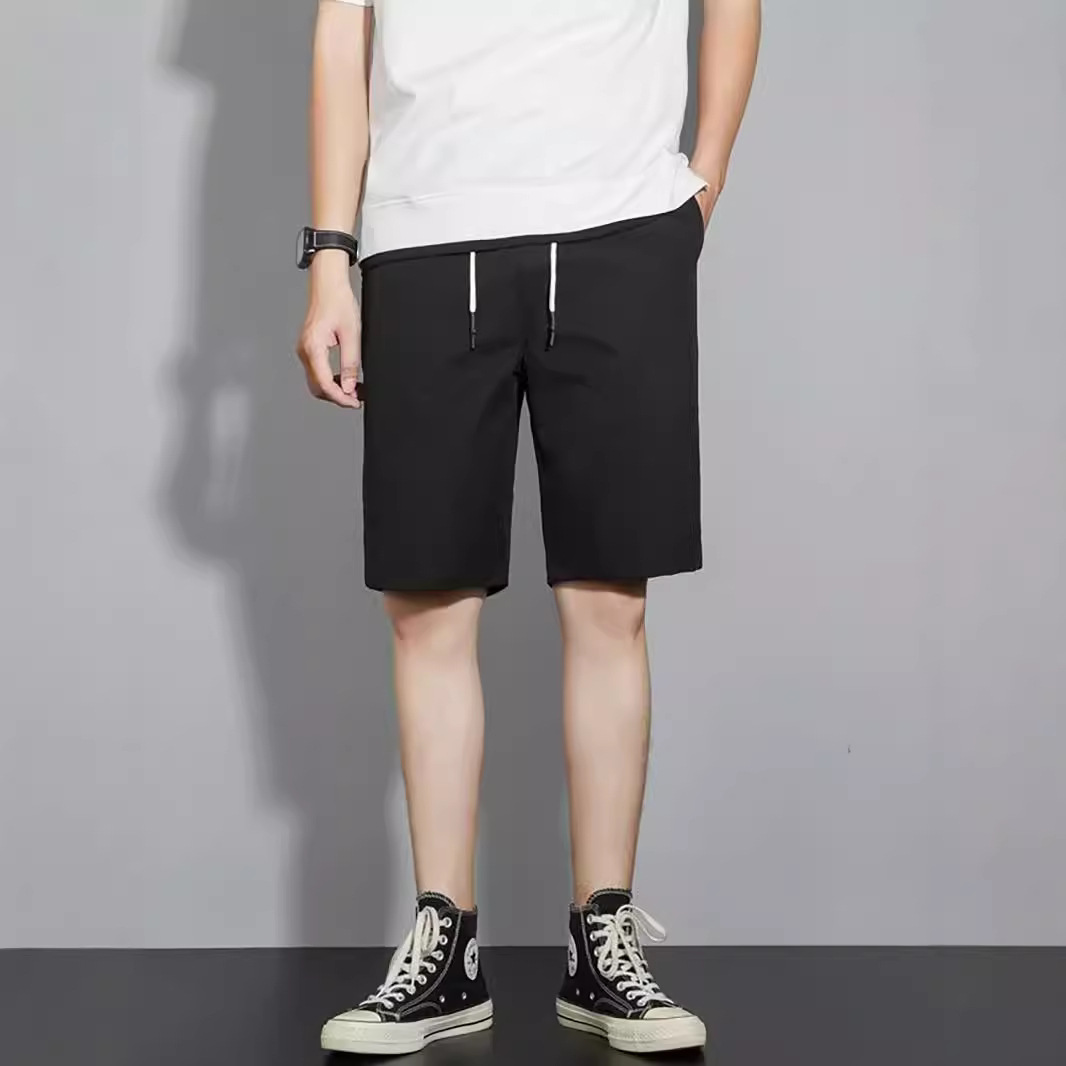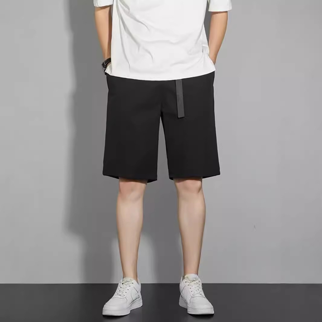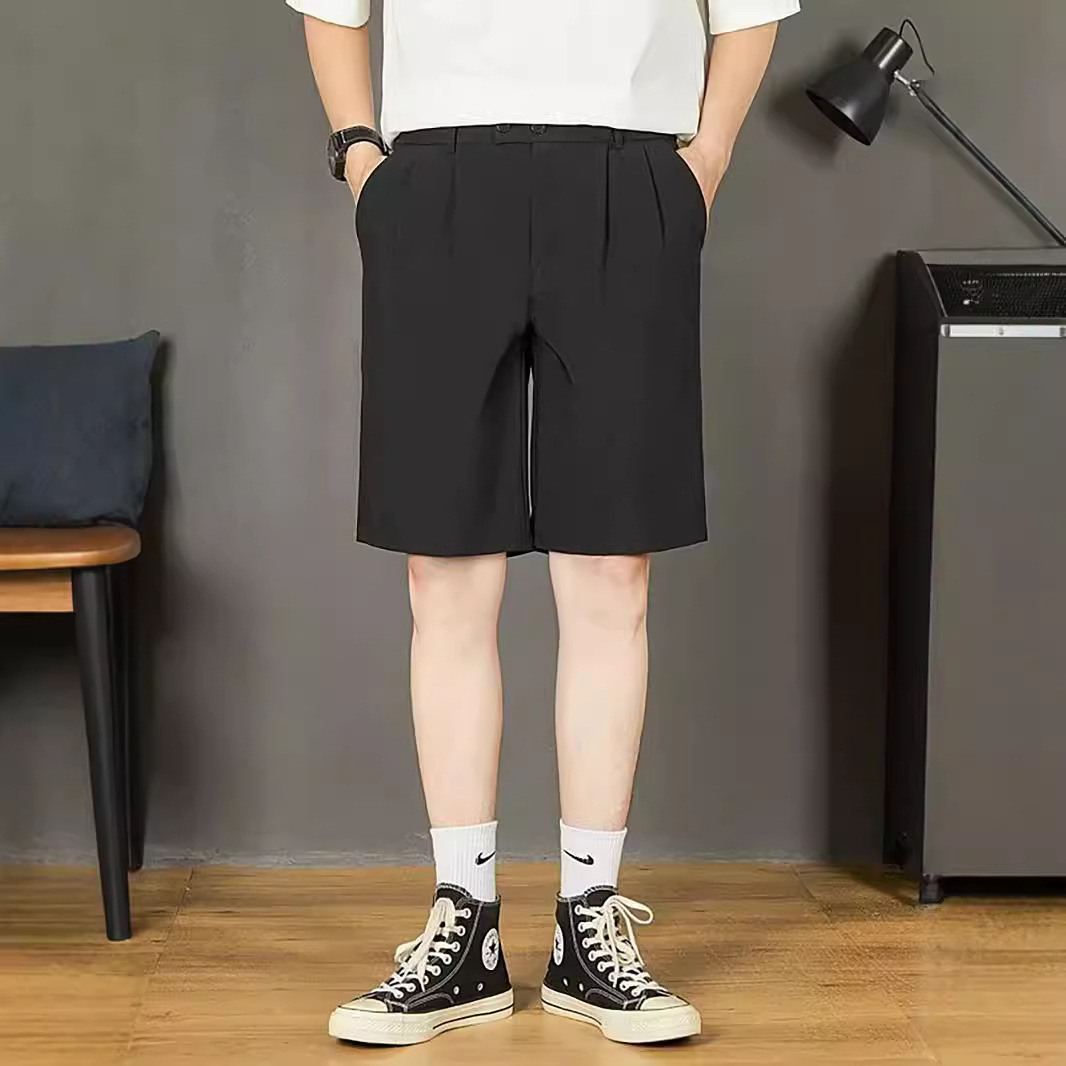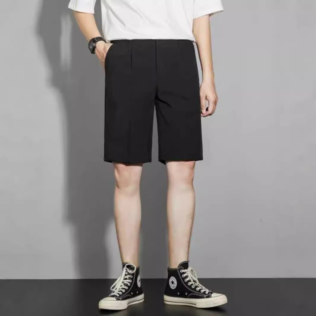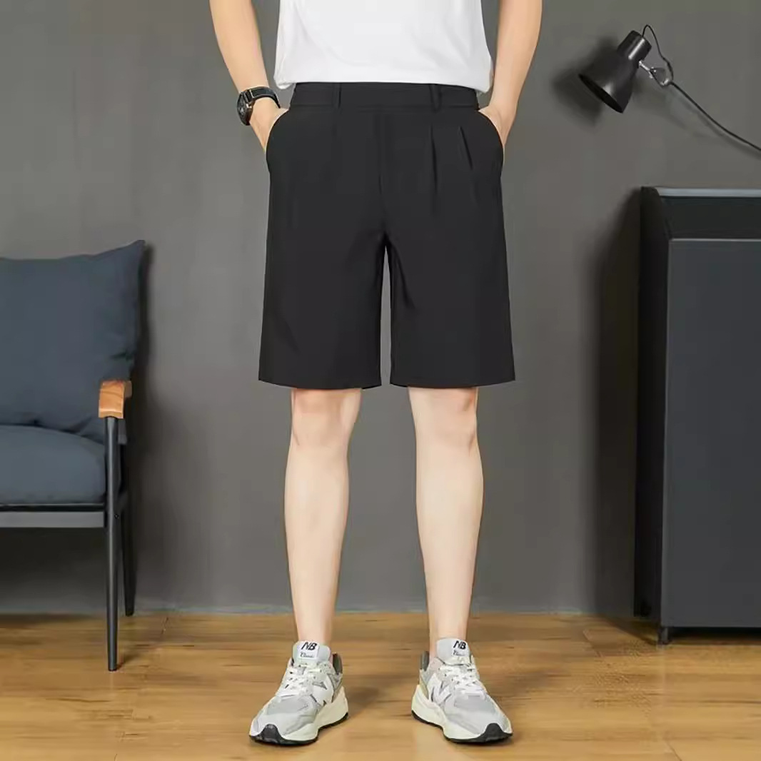 2024新型ビジネスカジュアル男子五分ズボンズボン男子夏黒氷糸男子スーツパンツ