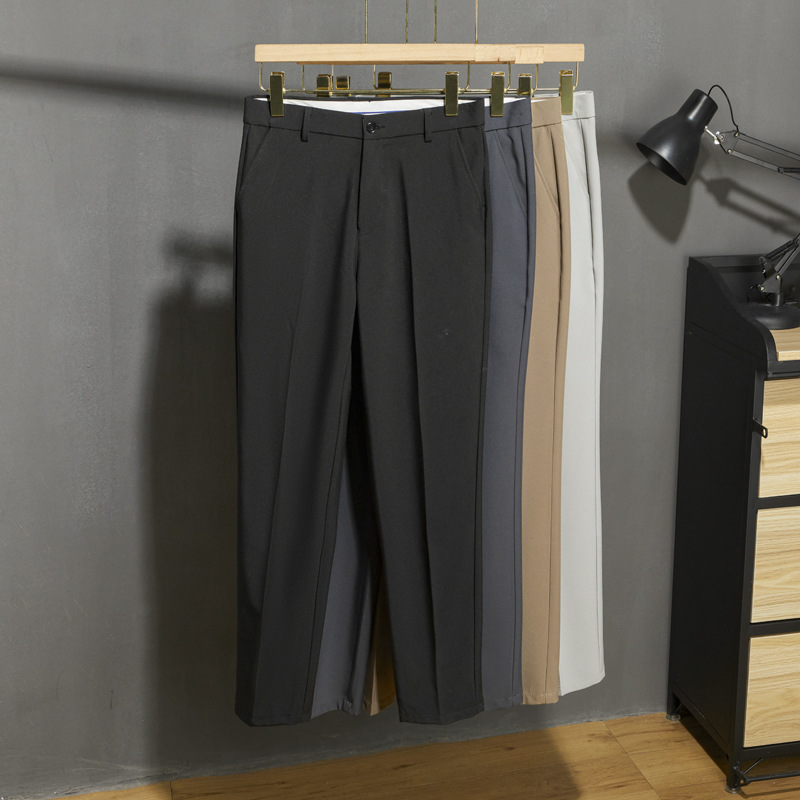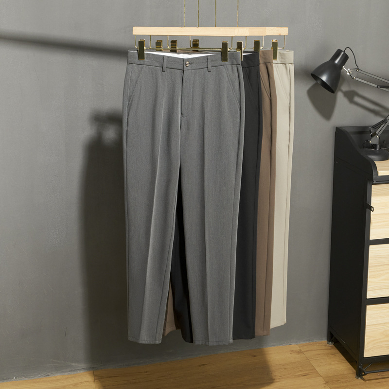 2024年の新型夏の薄いタイプの9分のスーツのズボンの男性の直筒のペンダント感の男性のアイロンをかけないでカジュアルなズボンのズボン