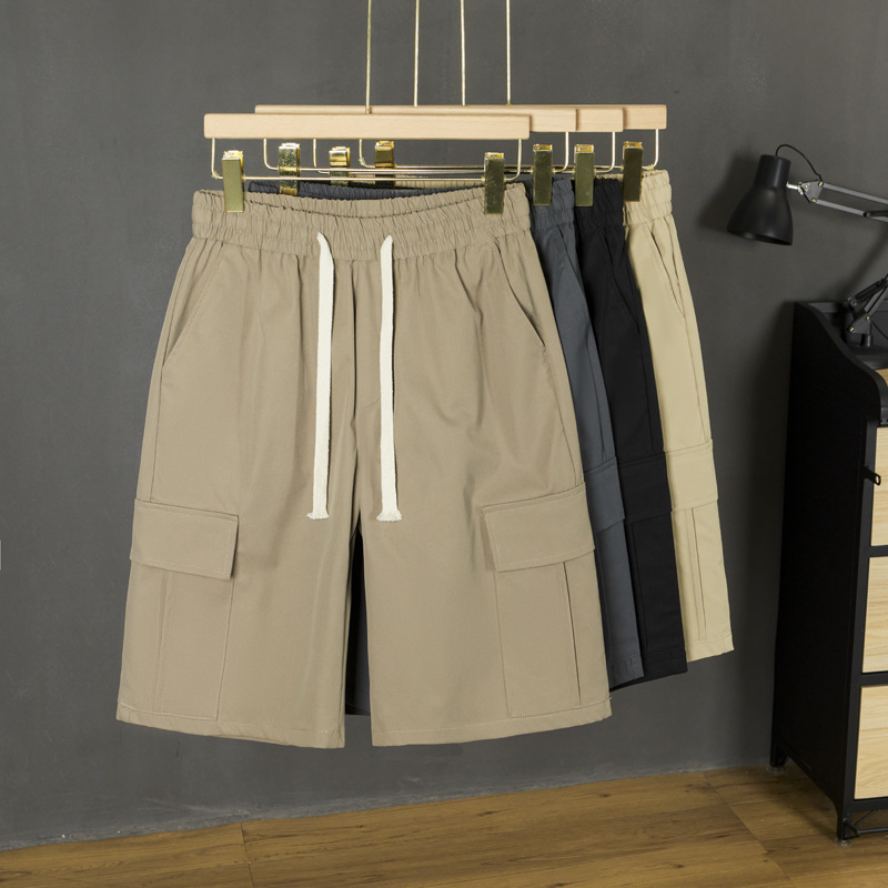 2024夏の新型五分工装半ズボン男子日系香港風レトロなファッションストレート感カジュアルパンツ男