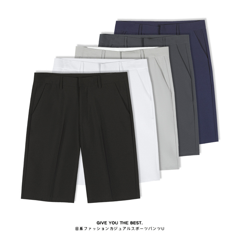 軽くて豪華な夏の男性の薄いタイプの半ズボンの男性の通気性のズボンの男性のビジネスのカジュアルな中のズボンの5分のズボンの潮の黒色の白色