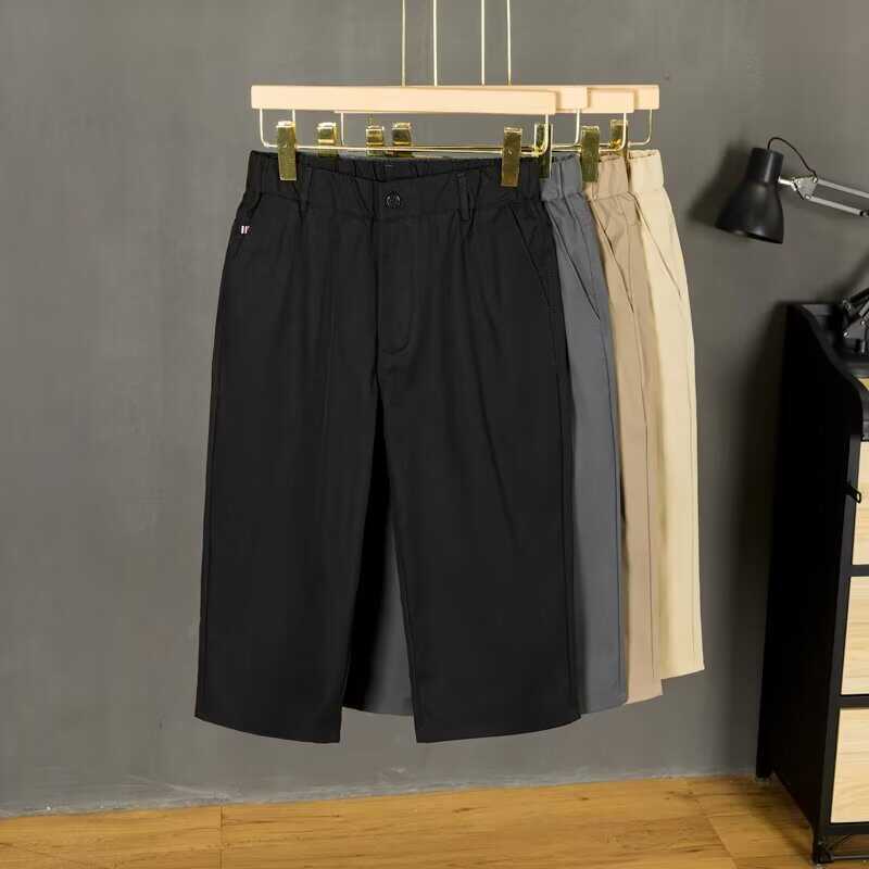 夏2024新ファッション快適スーツ半ズボン男性修身中腰直筒純色五分カジュアルズボン