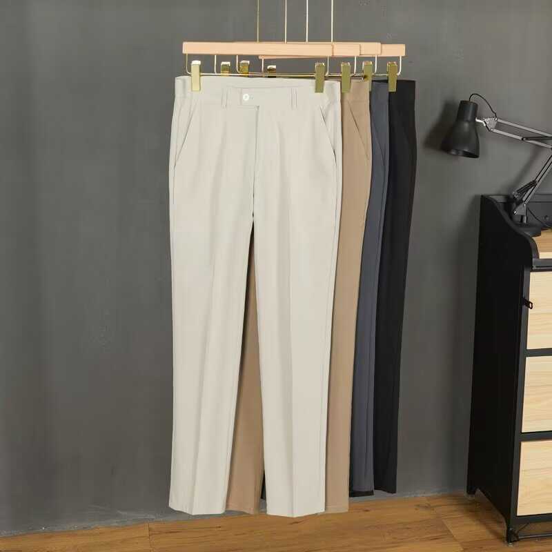夏の男性用氷糸ズボンの男性用シルクは滑りやすく、シワに強い高級感のあるストレートズボンに9分のカジュアルパンツを合わせています。