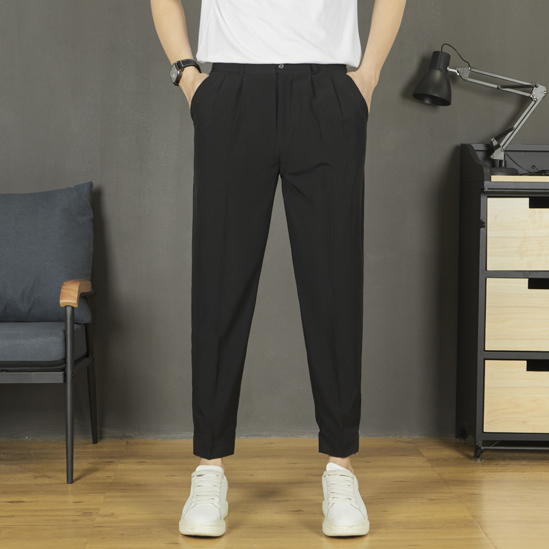 カジュアルパンツ男性9分マジックテープ男性高級感ハロン日系夏氷糸薄手スーツパンツ
