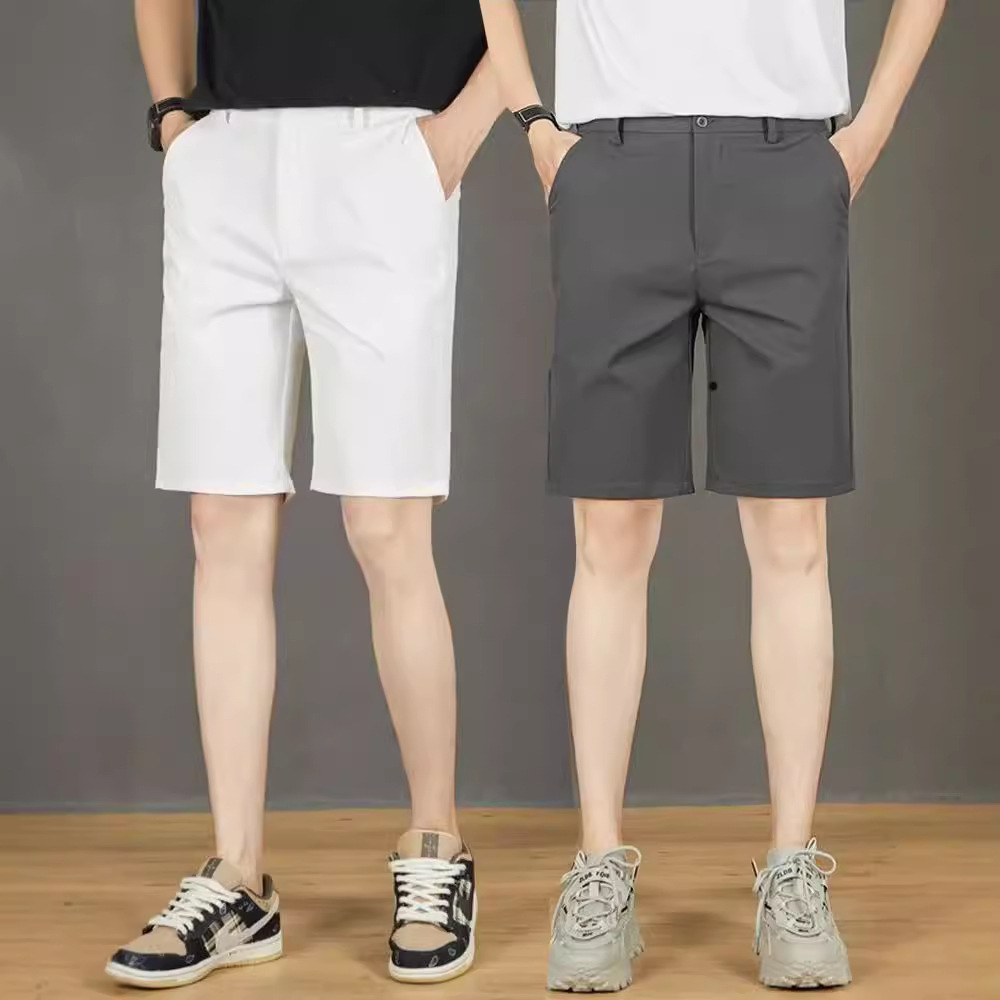 夏の氷糸の5分のズボンの男性のマジックはズボンのまっすぐな筒のカジュアルなズボンのファッションの重ポンドのスーツの半ズボンの男性のズボンを貼ります。